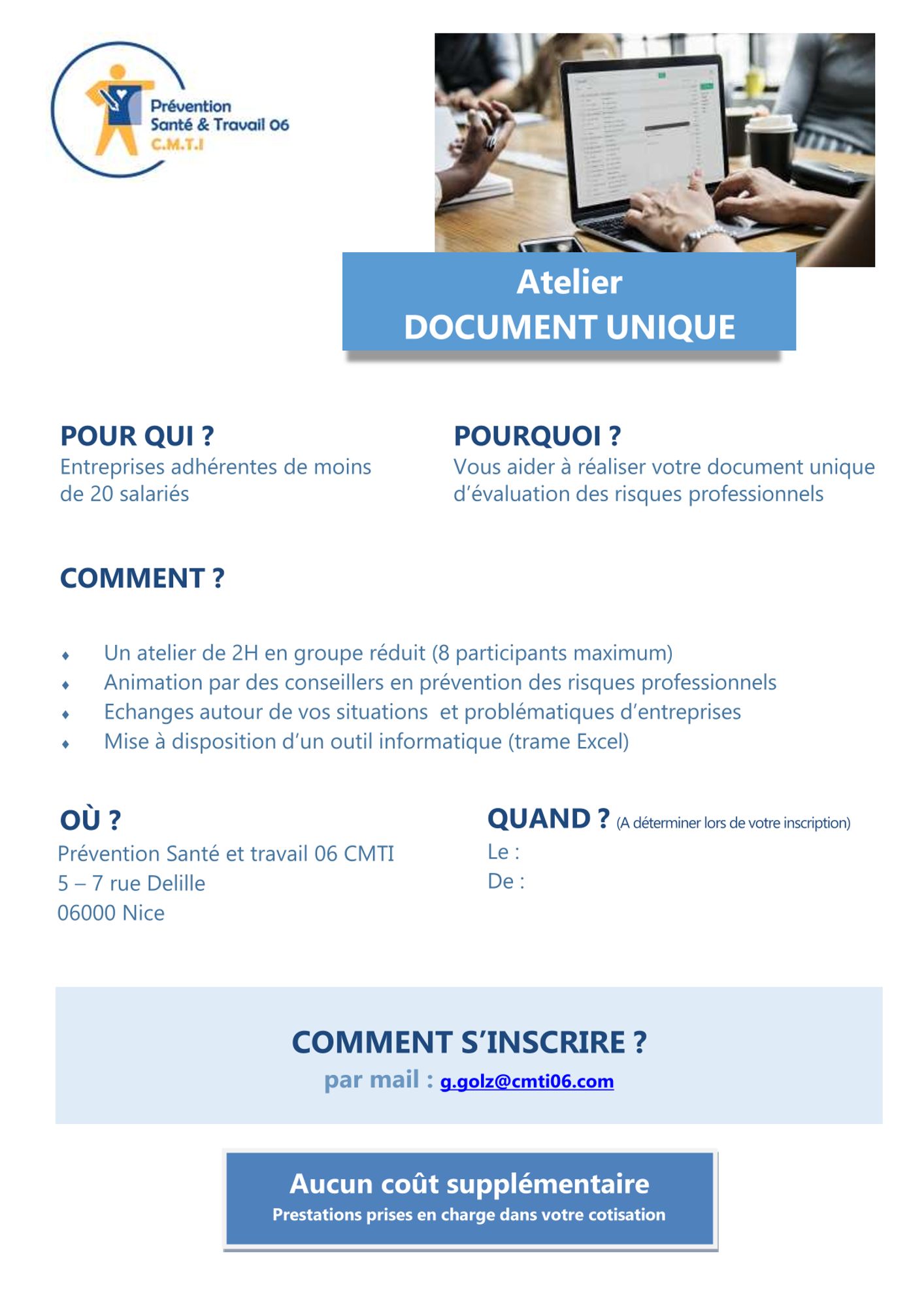 Ateliers concernant l'aide à la réalisation du Document Unique d'Evaluation des Risques.