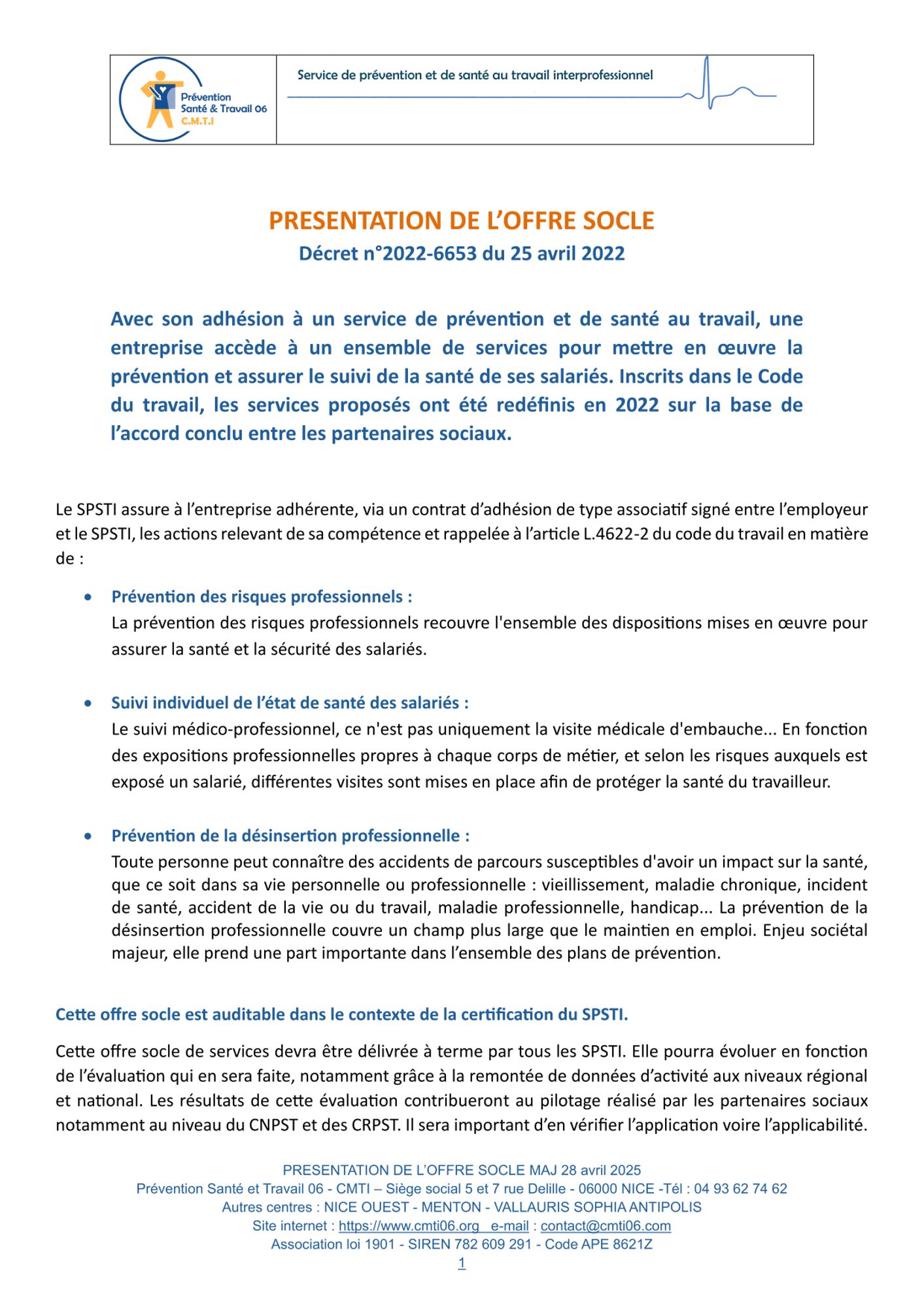 Offre socle du CMTI Présentation de l'offre socle de services du CMTI (215.9 Ko) Offre socle de services (14.0 Mo)
